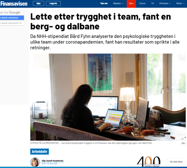 Forskning skal være tilgjengelig, forståelig og anvendbart. Det brenner jeg for. Da passet det bra at to av mine kolleger på NHH ville lage en minifilm av artikkelen min "Waiting for the host to start this meeting..." - Psykologisk trygghet i digitalt teamarbeid (Fyhn, 2020). Artikkelen ble skrevet tilbake i mai i fjor, da de... Fortsett lesing →